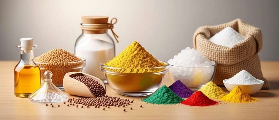 مواد اولیه صنایع غذایی شامل ترکیبات مختلفی هستند که در فرآیند تولید، ذخیره سازی و حفظ محصولات غذایی استفاده می شوند. این مواد شامل افزودنی ها مانند رنگ ها، طعم دهندهها، مواد حافظه، امولسیفایرها، مواد حفظ کننده (نگهدارنده) مانند بنزوئیک اسید، نیترات و نیتریت، ویتامینها، اسیدهای آمینه، افزودنیهای رفتاری و آنتیاکسیدانها را شامل میشوند. این مواد اولیه به منظور بهبود ویژگیهای ظاهری، ماندگاری، طعم و بافت محصولات غذایی، همچنین حفظ سلامت و کیفیت آنها در طول زمان مورد استفاده قرار می گیرند.